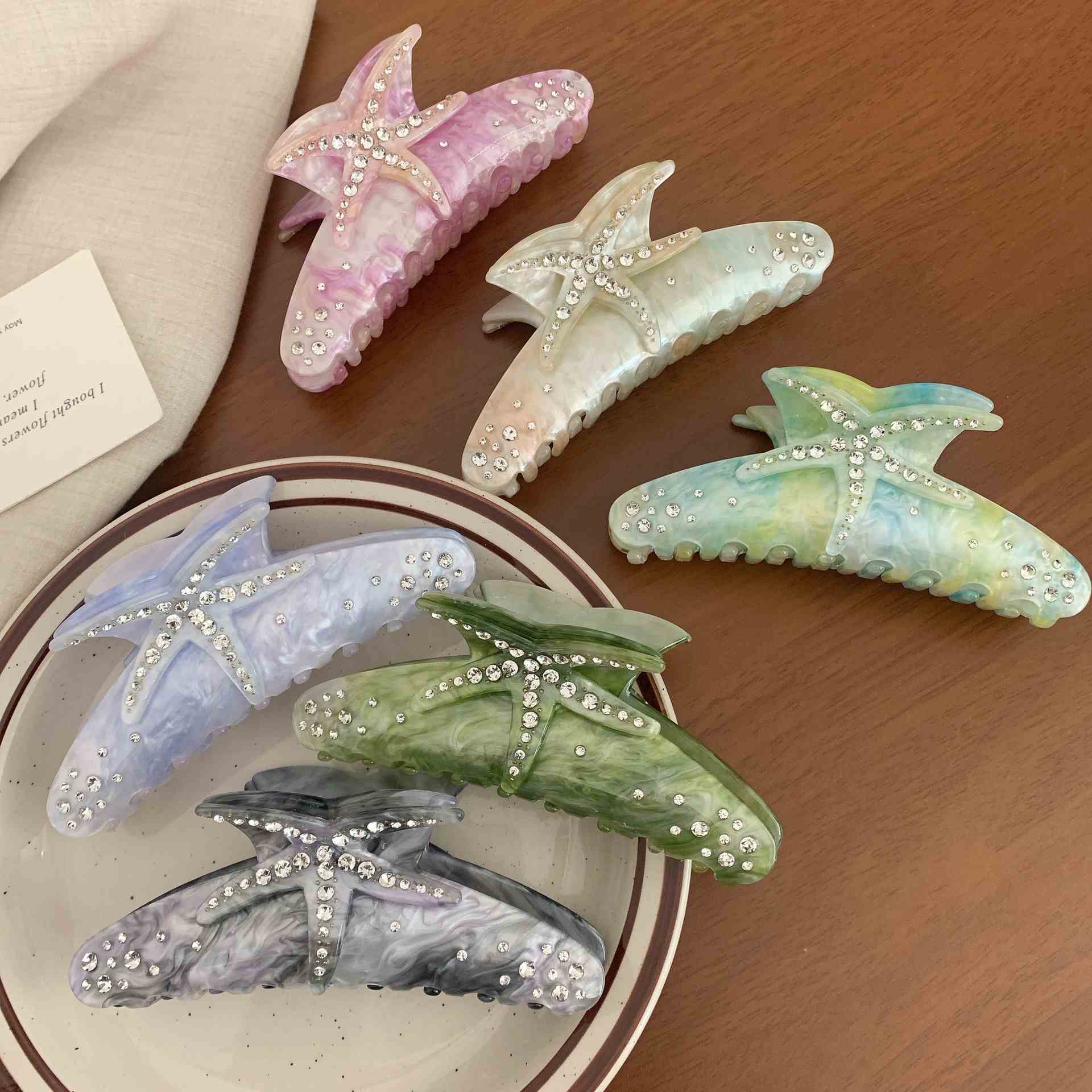 Kilang Fesyen Borong Fesyen Acetate Star Hair Claw 11.5 cm Klip Rambut Starfish Musim Panas Untuk Wanita Gadis Rambut Tebal